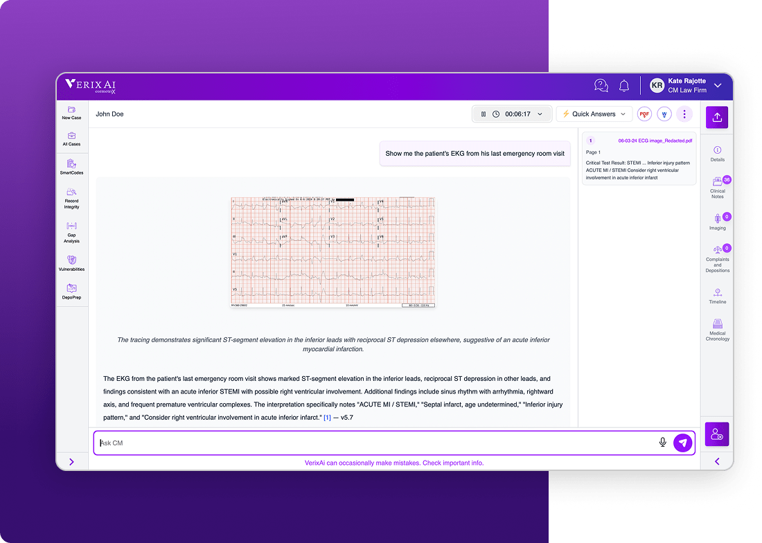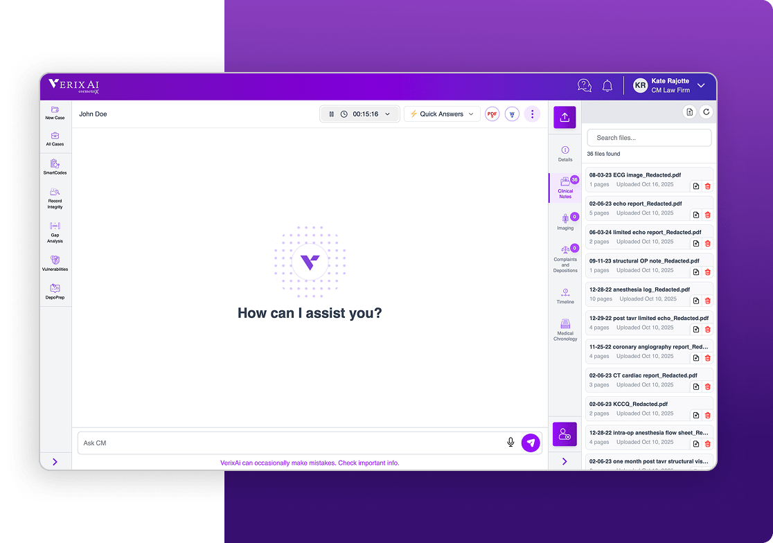 Whether you’re developing a case strategy, building a chronology, or preparing testimony, VerixAi adapts to your workflow.