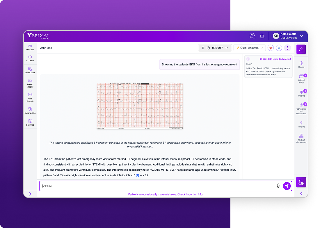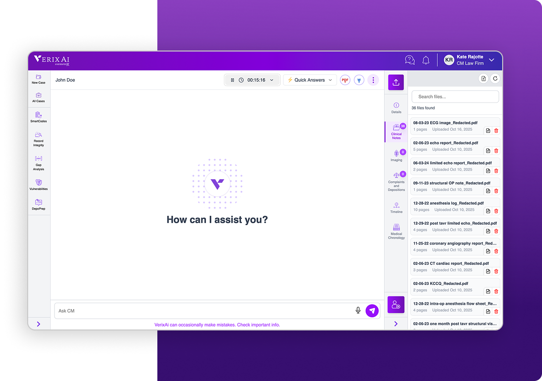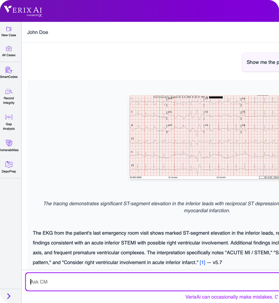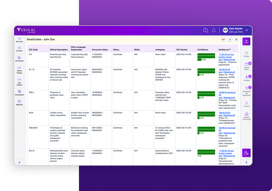 VerixAi brings order to the chaos - helping legal and clinical experts see the full story behind every case.